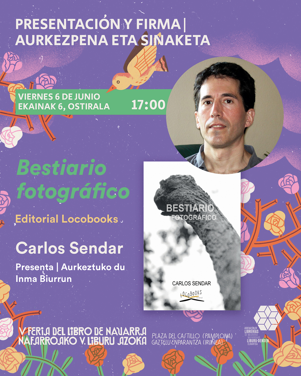 Carlos Sendar presenta y firma ejemplares de su último libro “Bestiario Fotográfico” durante la Feria del Libro de Navarra.