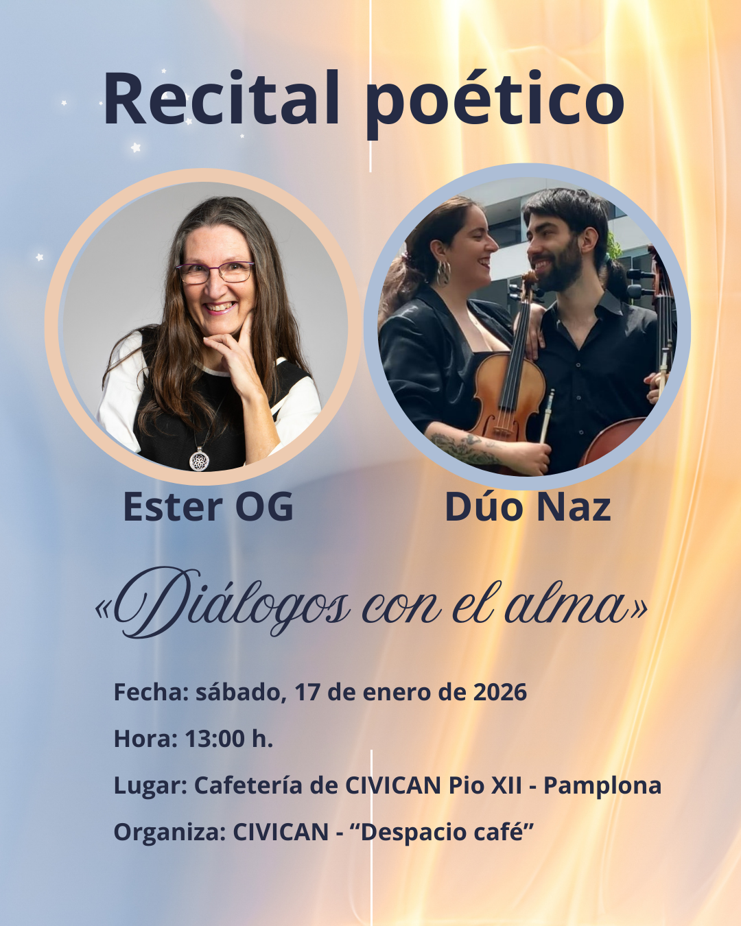 Ester Ortiz Gironés nos presenta su recital poético Diálogos con el alma acompañada por el Día Naz en las cuerdas.