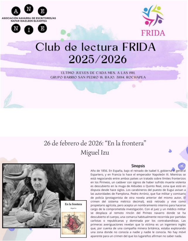 El Club de lectura Frida, en su edición de febrero 2026 tiene el gusto de presentar la obra En la frontera, de nuestro socio fundador, Miguel Izu.