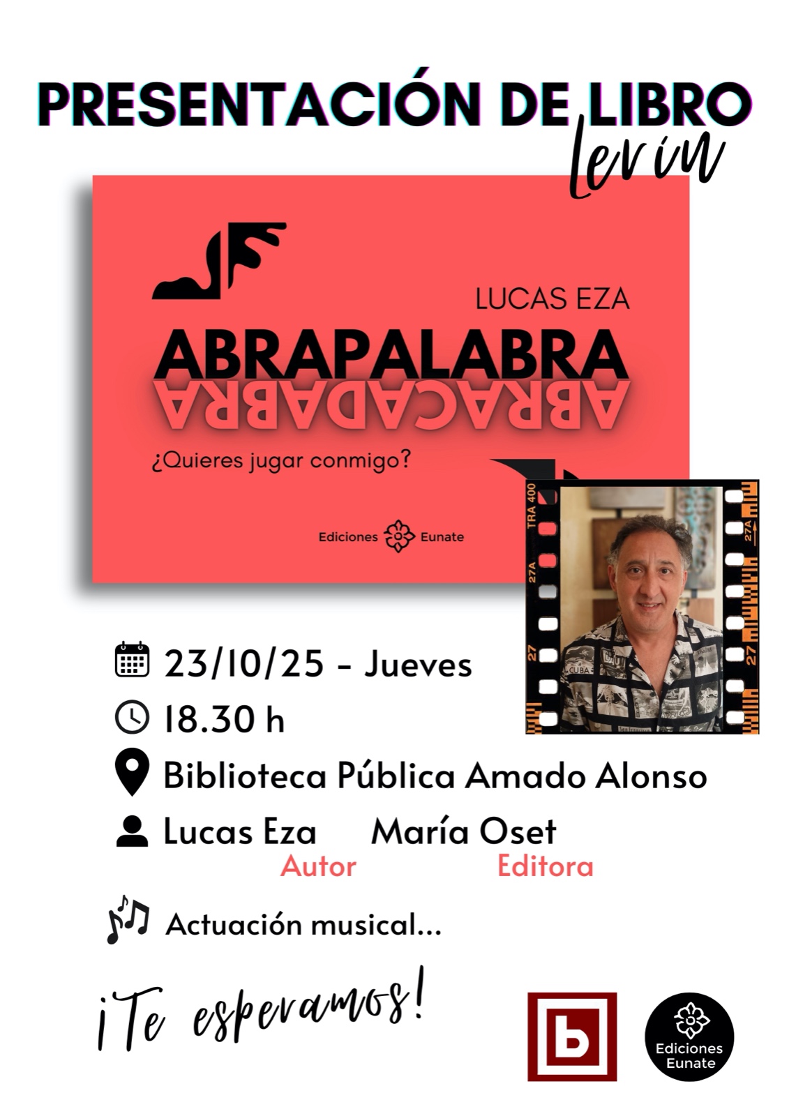 Nuestro autor Lucas Eza presenta su libro “Abrapalabra”, con la presencia de la editora María Oset y con actuación musical.