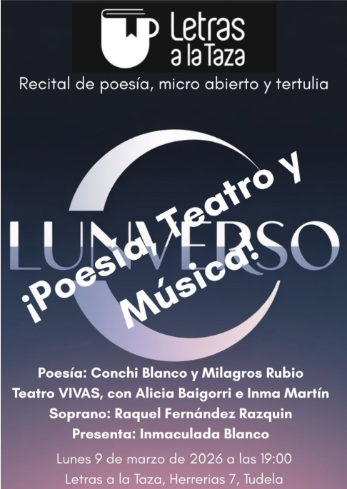 Poesía, teatro y música en la librería Letras a la Taza de Tudela de Navarra.
